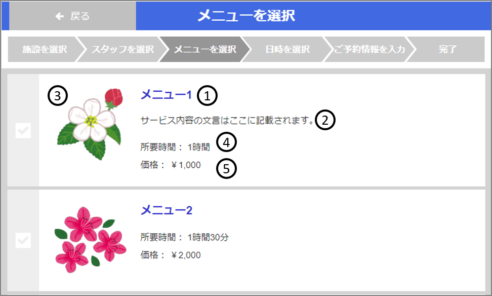 2)「メニュー情報」を選択し、該当メニューをクリック